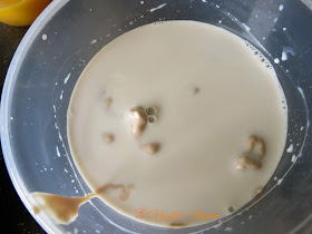 Dans une casserole, mélangez et faites chauffer l'eau, le lait et la farine à 65°. Remuez sans arrêt pour éviter la formation de grumeau.